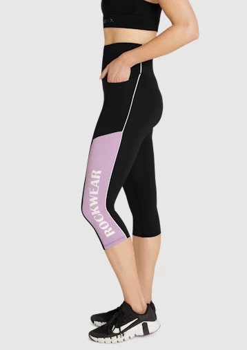 The Blocked Pocket 3/4 Tights by RockwearTake on any fitness challenge in the Blocked Pocket 3/4 Tights. A concealed waistband pocket and colour block design brings function and form together. The lightweight fabric, with its moisture wicking properties, and 4-way stretch feels like a second skin. These tights will have you reaching peaks, hitting targets, and crushing goals at the gym, on the track or in a class.Great for, but not limited to:RunningHIITGymWeights